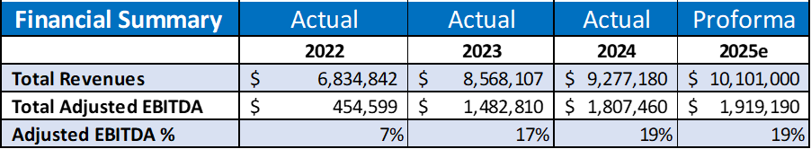 The Company’s revenues over the 4 years from 2022 to 2025 (pro forma) have grown at a compounded annual growth rate (CAGR) of 13.9%, with an increasing Gross Profit that has gone from 61% to 68% and an Adjusted EBITDA of 19%.
